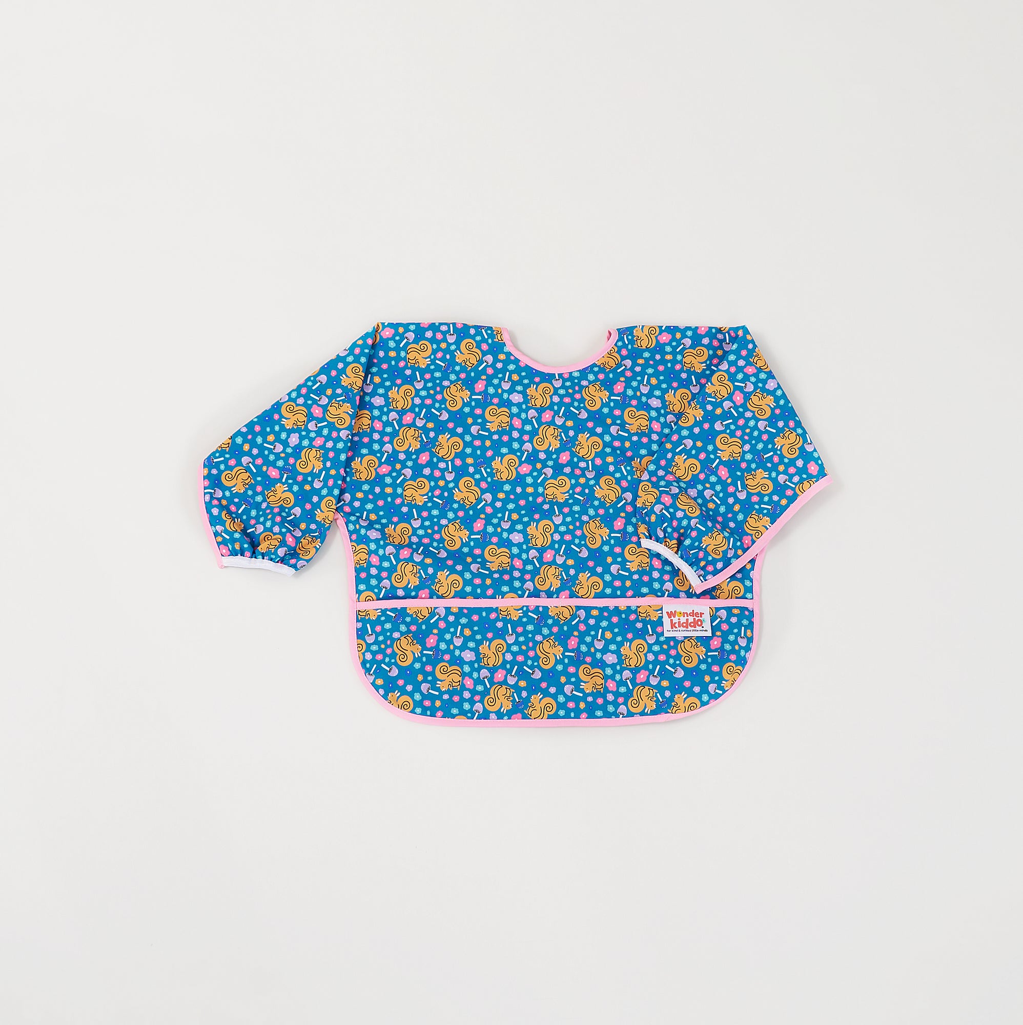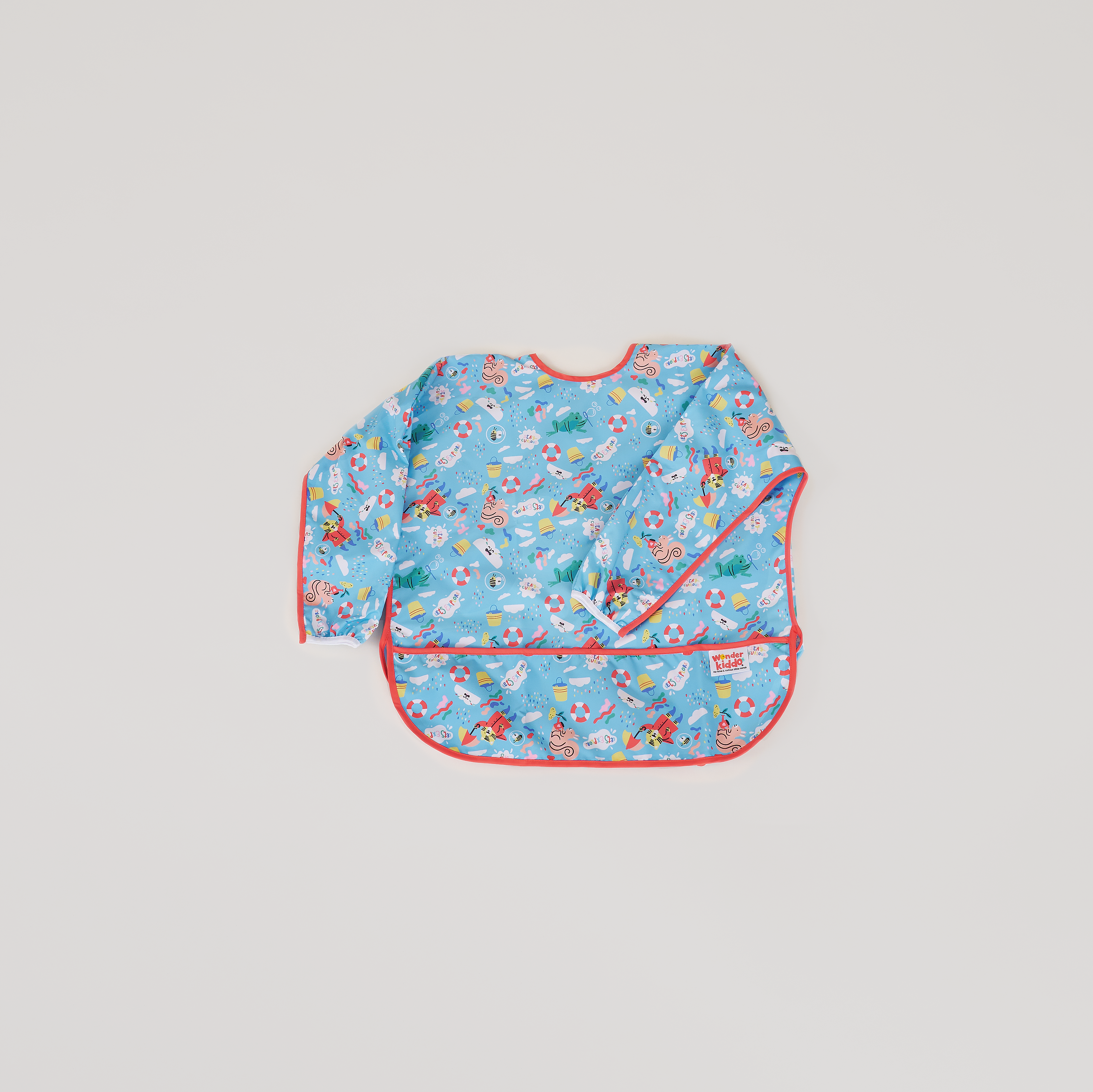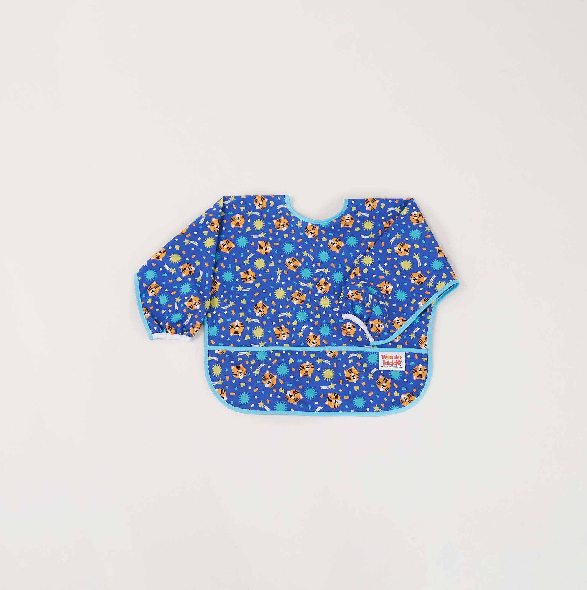 Los baberos Wonder Kiddo tienen una tela impermeable de tacto suave que protege la ropa de cualquier mancha o suciedad. Esta versión manga larga, permite tener una mayor cobertura de los brazos y cualquier prenda con mangas. Su tela es resistente al constante lavado y uso, y es de rápido secado. Cuenta con un cierre posterior en velcro, que le permite ajustarse de manera segura a la medida del cuello del niño y desajustarse rápidamente cuando se requiera. El bolsillo tipo “recoge todo” atrapa la comida evitando que caiga al piso y además permite que el niño pueda tomar de nuevo algún trozo de comida que se haya soltado de su mano o boca.