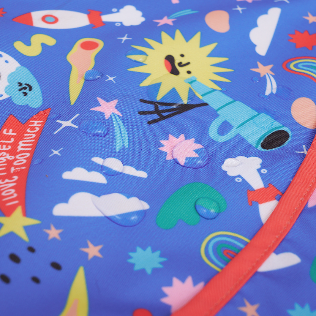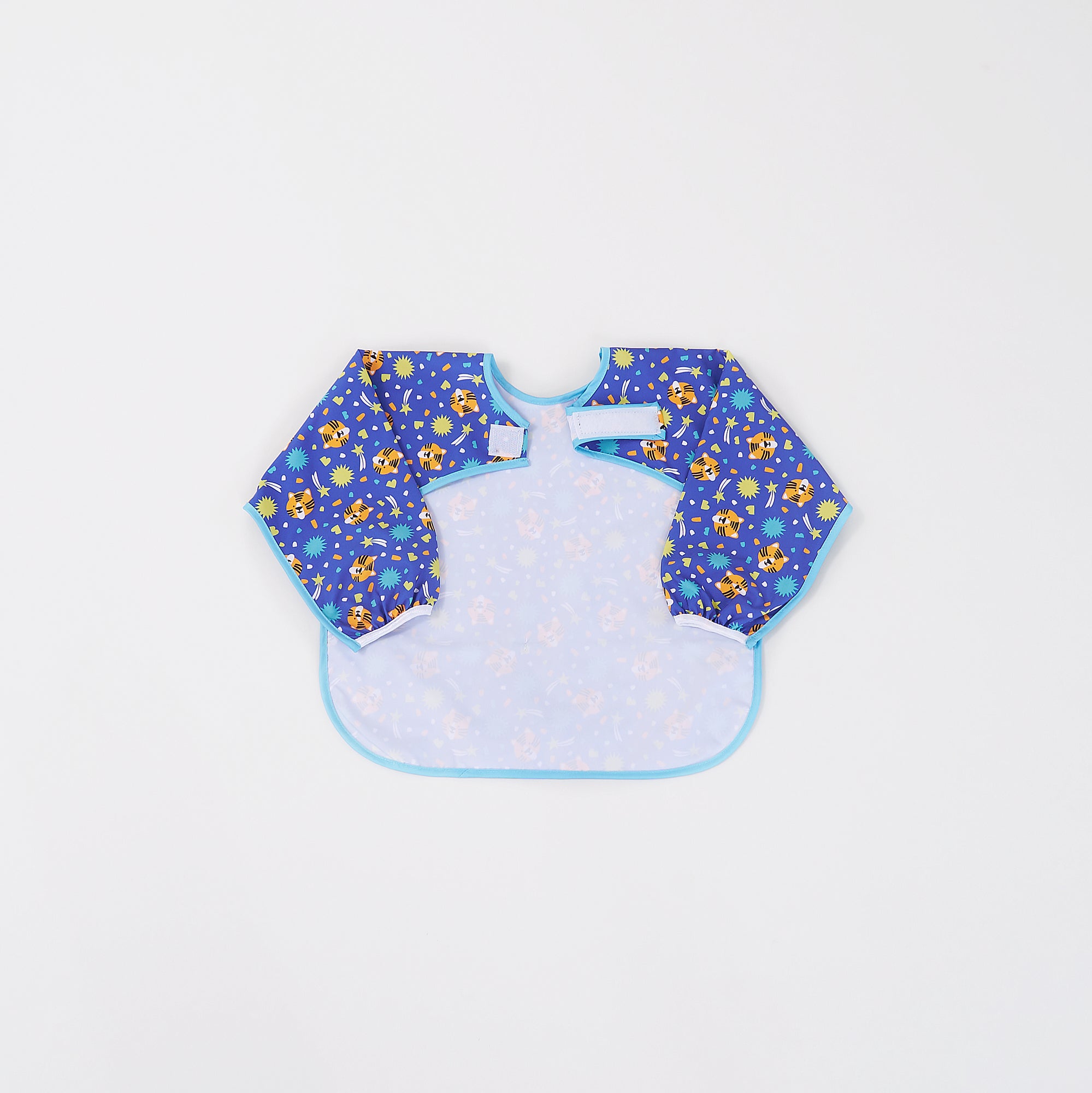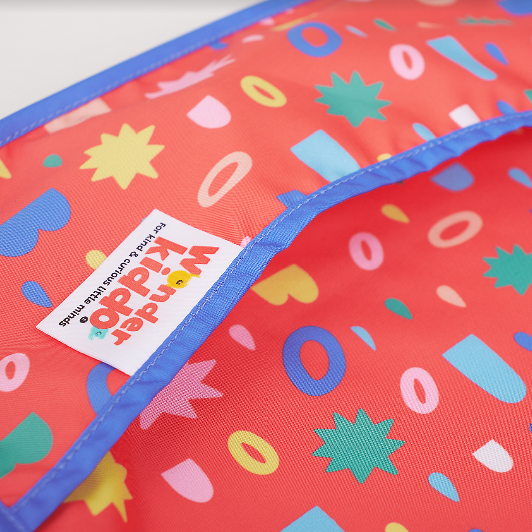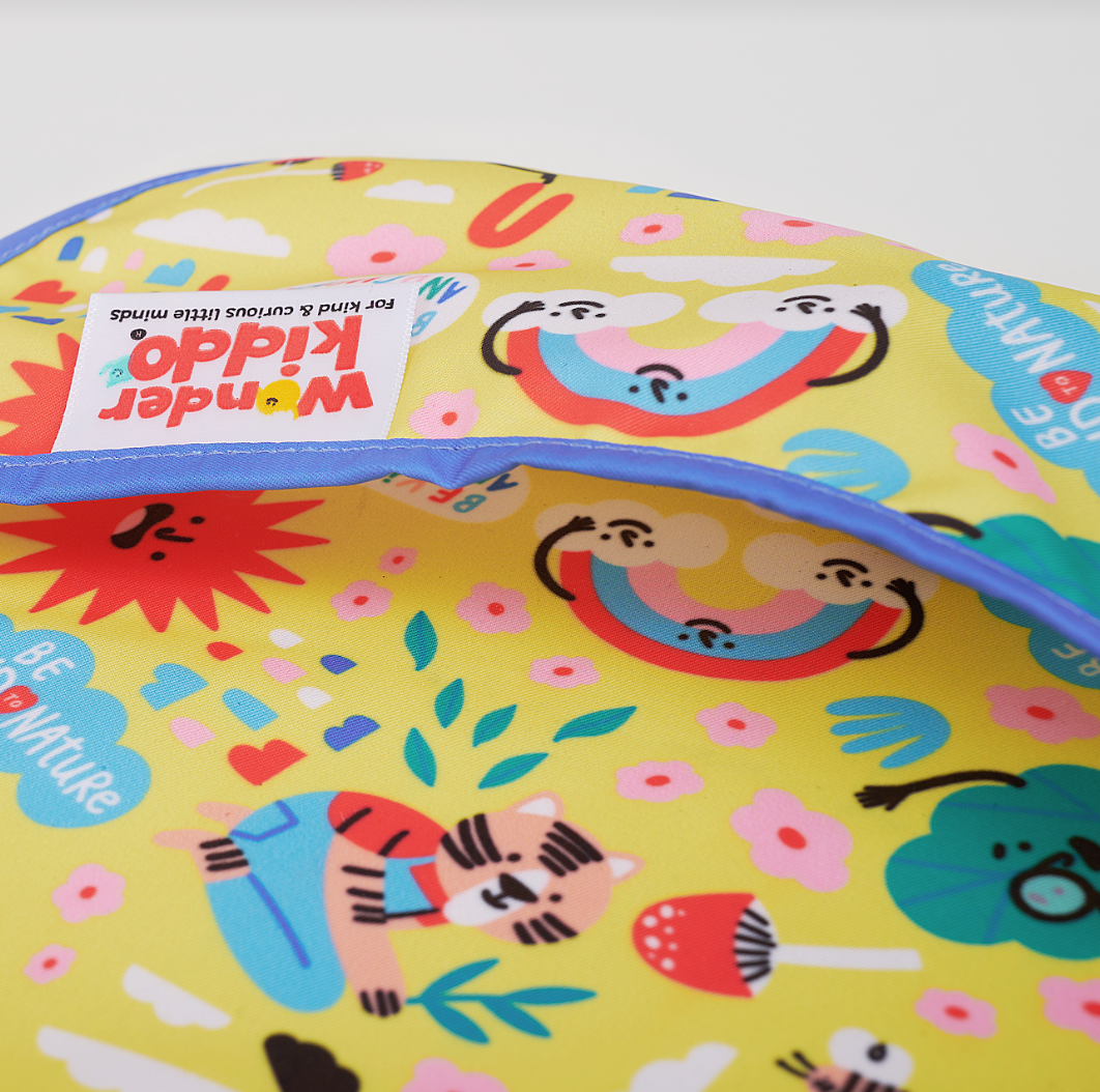 Los baberos Wonder Kiddo tienen una tela impermeable de tacto suave que protege la ropa de cualquier mancha o suciedad. Esta versión manga larga, permite tener una mayor cobertura de los brazos y cualquier prenda con mangas. Su tela es resistente al constante lavado y uso, y es de rápido secado. Cuenta con un cierre posterior en velcro, que le permite ajustarse de manera segura a la medida del cuello del niño y desajustarse rápidamente cuando se requiera. El bolsillo tipo “recoge todo” atrapa la comida evitando que caiga al piso y además permite que el niño pueda tomar de nuevo algún trozo de comida que se haya soltado de su mano o boca.